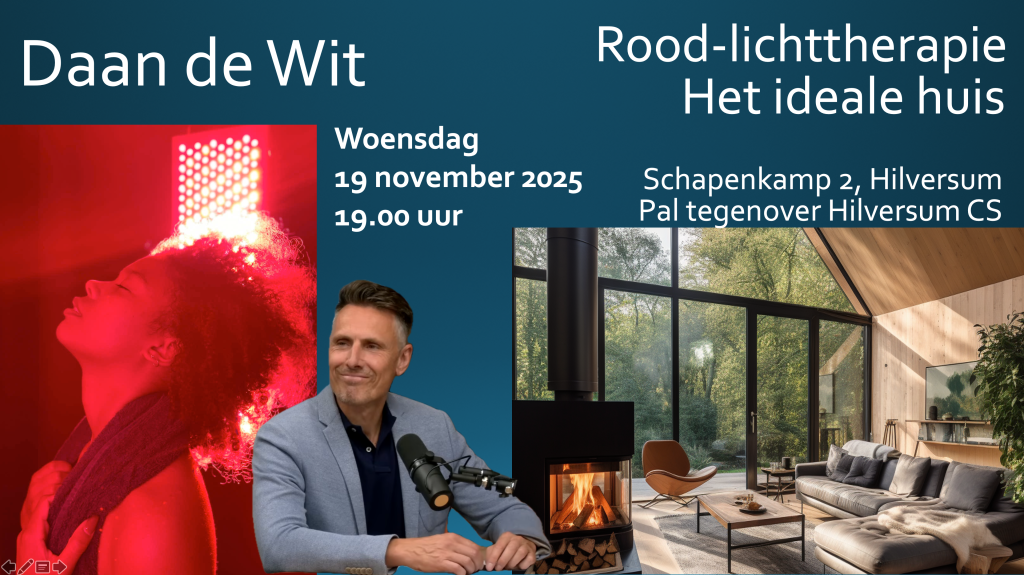 Tijdens deze lezing duikt onderzoeksjournalist Daan de Wit in twee fascinerende en cruciale thema’s voor een vitaal leven: Rood Licht en het Ideale Huis.